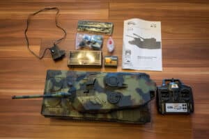 Ich verkaufe einen fernsteuerbaren Leopard 2A6. Das Modell wurde kaum genutzt und ist voll funktionsfähig. Die Videos unten zeigen den Funktionsumfang (Sound, Rauch, Schussfunktion, etc.).